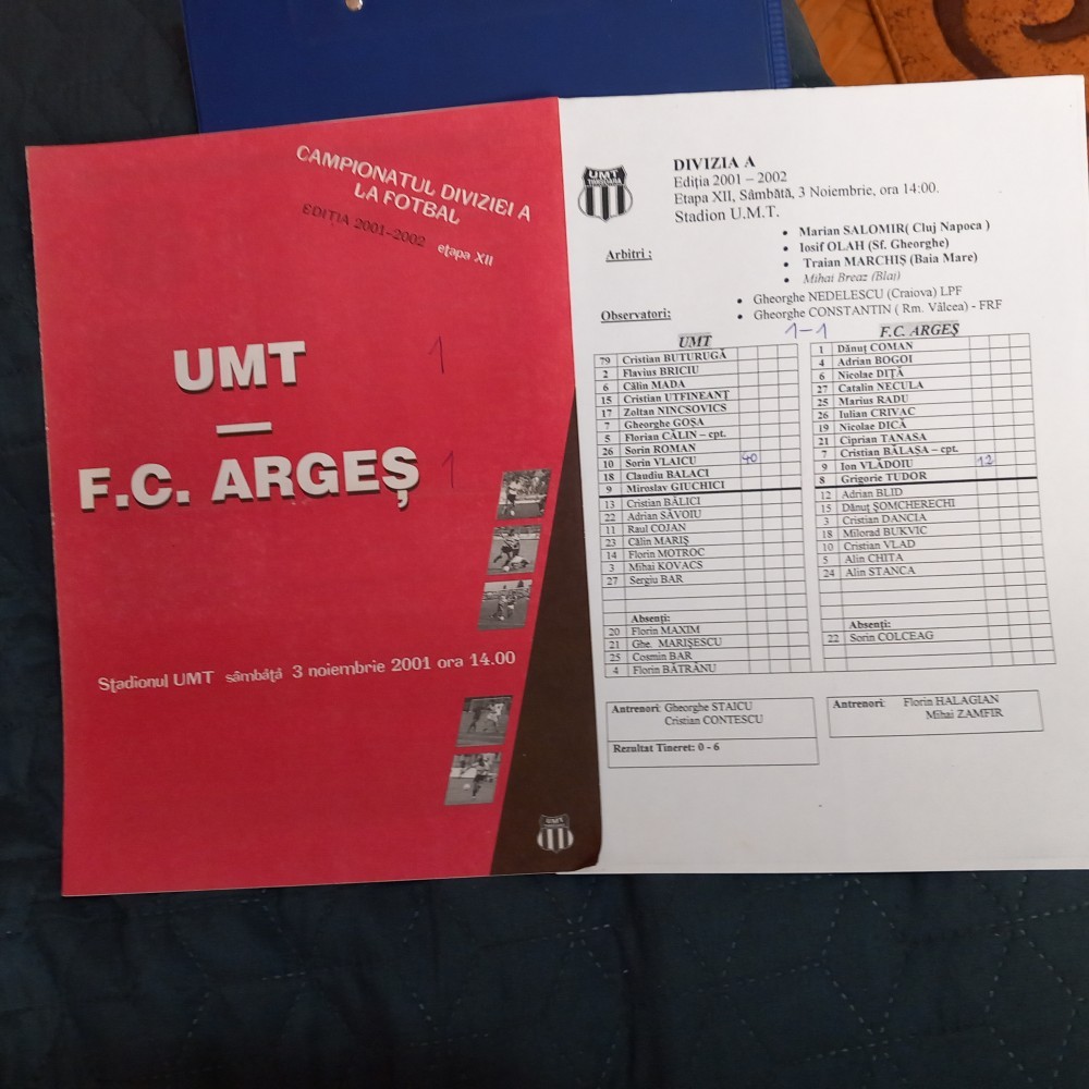 Program de la meciul disputat in data de 3 11 2001