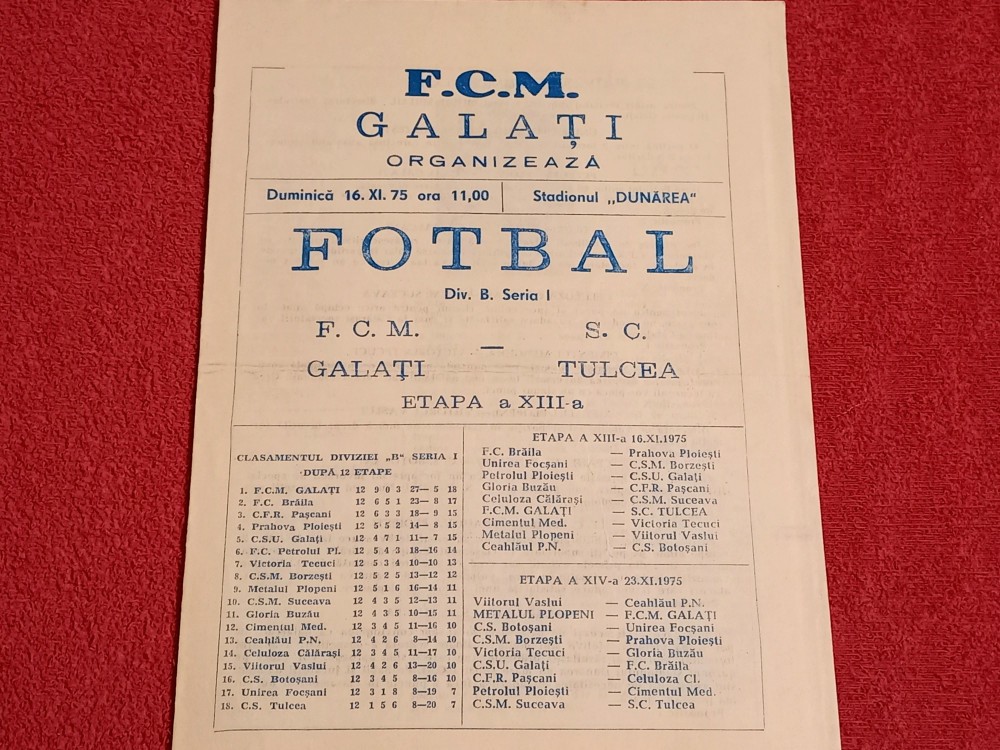 Program meci fotbal FCM GALATI - SC TULCEA (16.11.1975)