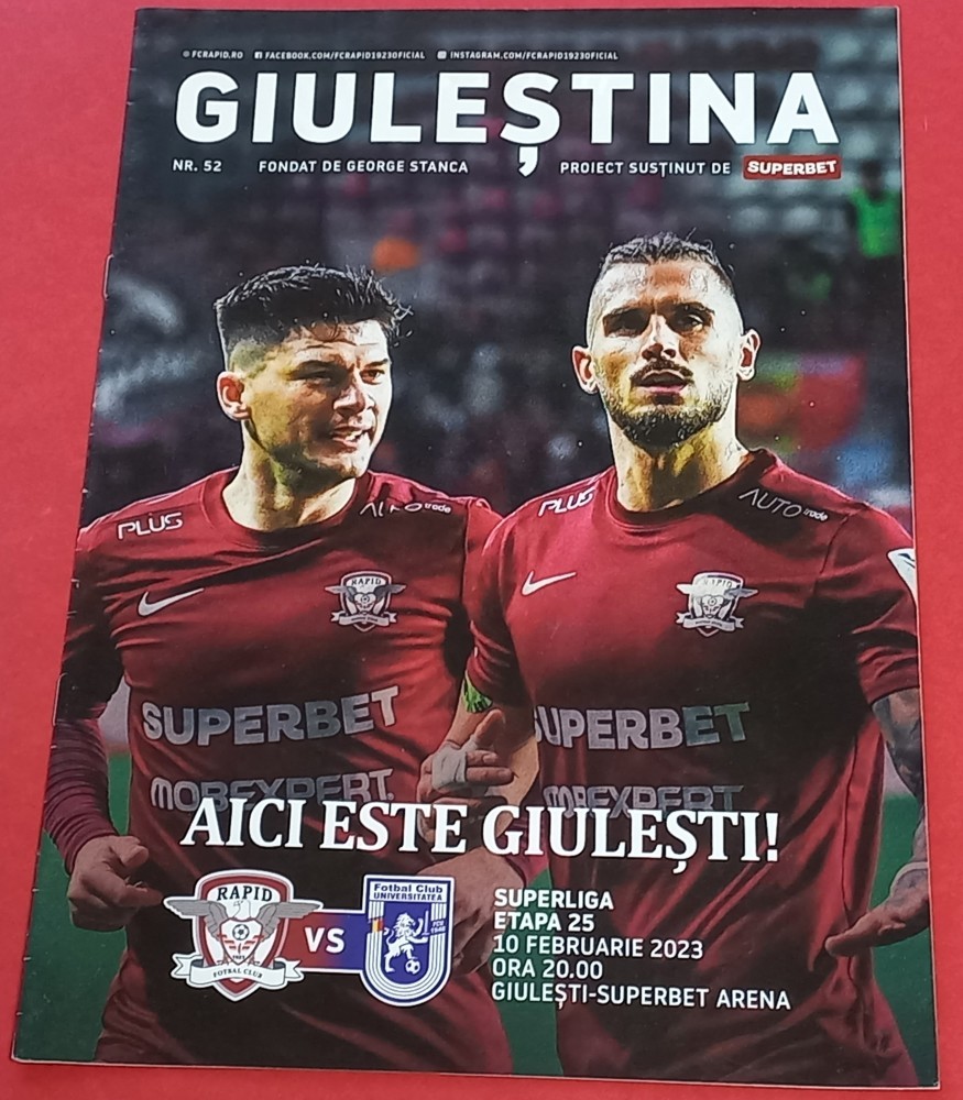 Program meci fotbal "GIULESTINA" / RAPID BUCURESTI - UNIVERSITATEA CRAIOVA (10.02.2023)