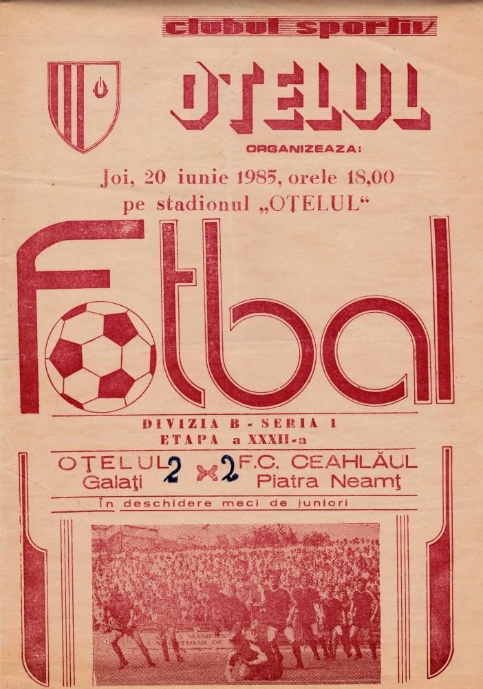 Program meci fotbal OTELUL GALATI - CEAHLAUL PIATRA-NEAMT 20.06.1985