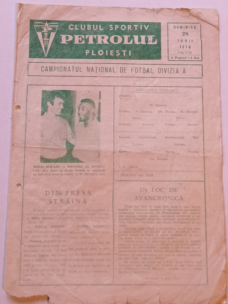 Program meci fotbal PETROLUL Ploiesti - UTA ARAD (28.06.1970)