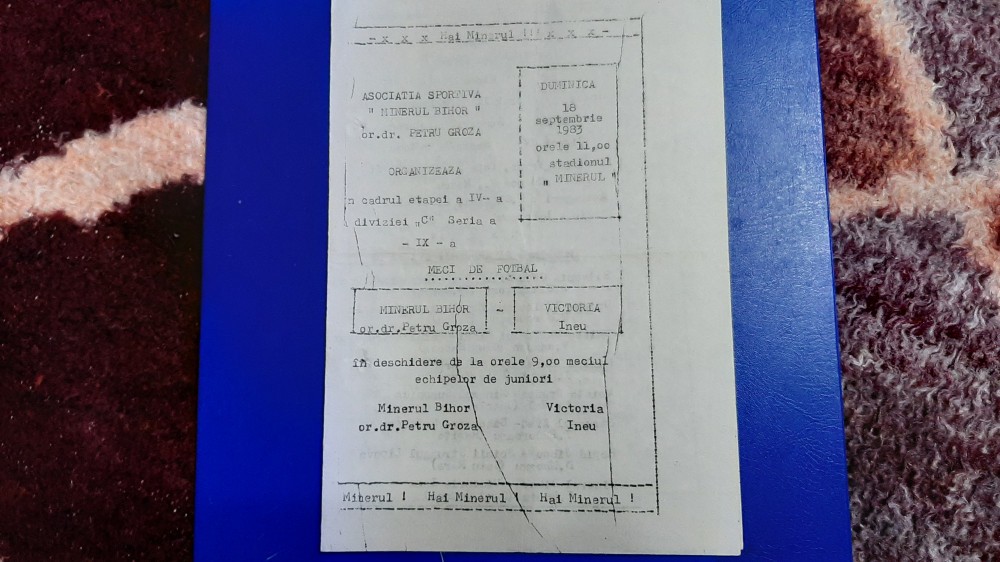 program de la meciul disputat in data de 18 09 1983