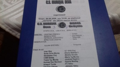 program Muresul Deva - Dacia Orastie