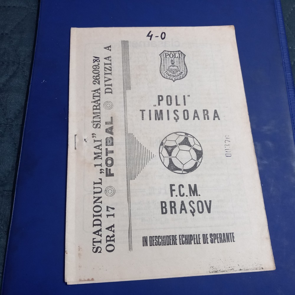 program de la meciul disputat in data de 26 09 1981