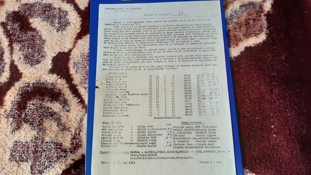 program de la meciul disputat in data de 23 05 1982