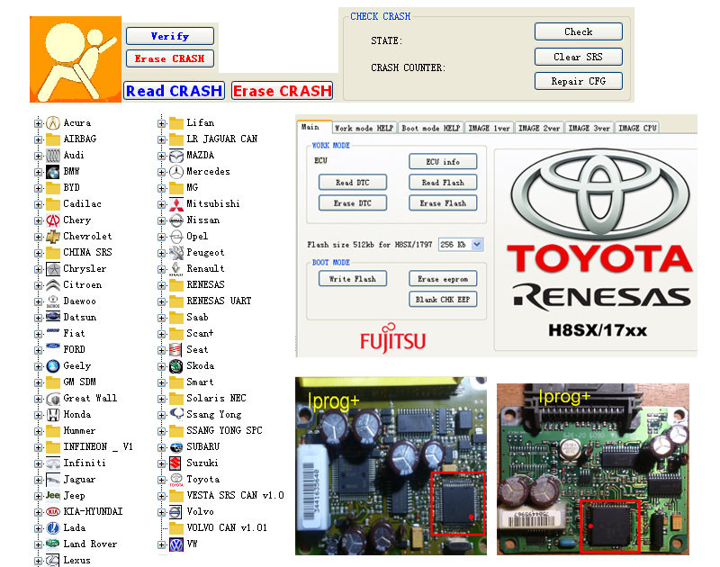 1. Functions including airbag, dashboard, car radio, ecu, eeprom,