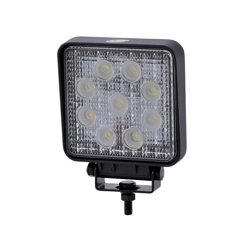 - KAML0077 Descriere: Proiector universal pentru lucru cu LED impermeabil. Numar LED-uri: 9x3W Tensiune de operare: 10-30V Culoare lumina la temperatura: 6.500K. Intensitate lumina: 2200 Lumeni Temperatura de lucru: -40 +80C Durata de viata: 30.000 Ore Garantie: 12 luni Dimensiuni: 108x108 mm Carcasa: Metal Culoare carcasa: Negru