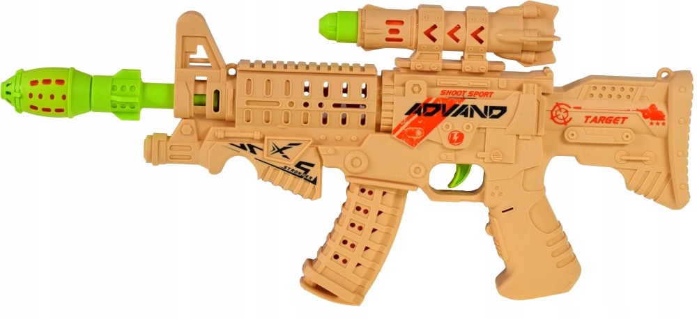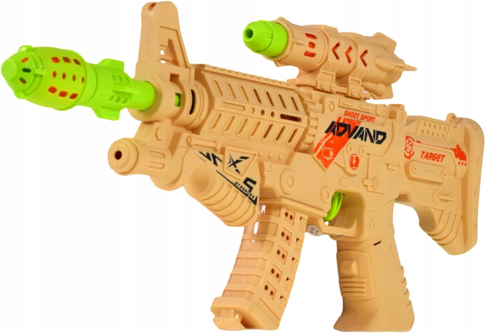 O pușcă de jucărie realizată cu atenție, care combină efecte luminoase și sonore spectaculoase, făcând joaca incredibil de realistă și captivantă.