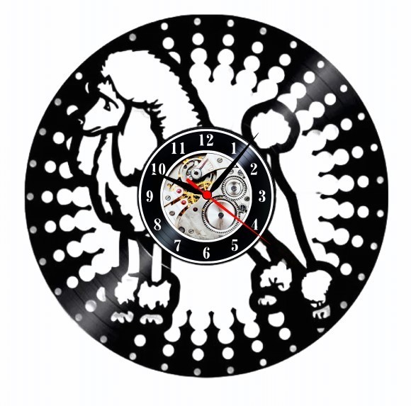 Transformă-ți camera într-un spațiu plin de personalitate cu acest ceas de perete unic, realizat manual dintr-un disc de vinil vintage și decorat cu silueta elegantă a unui pudel.