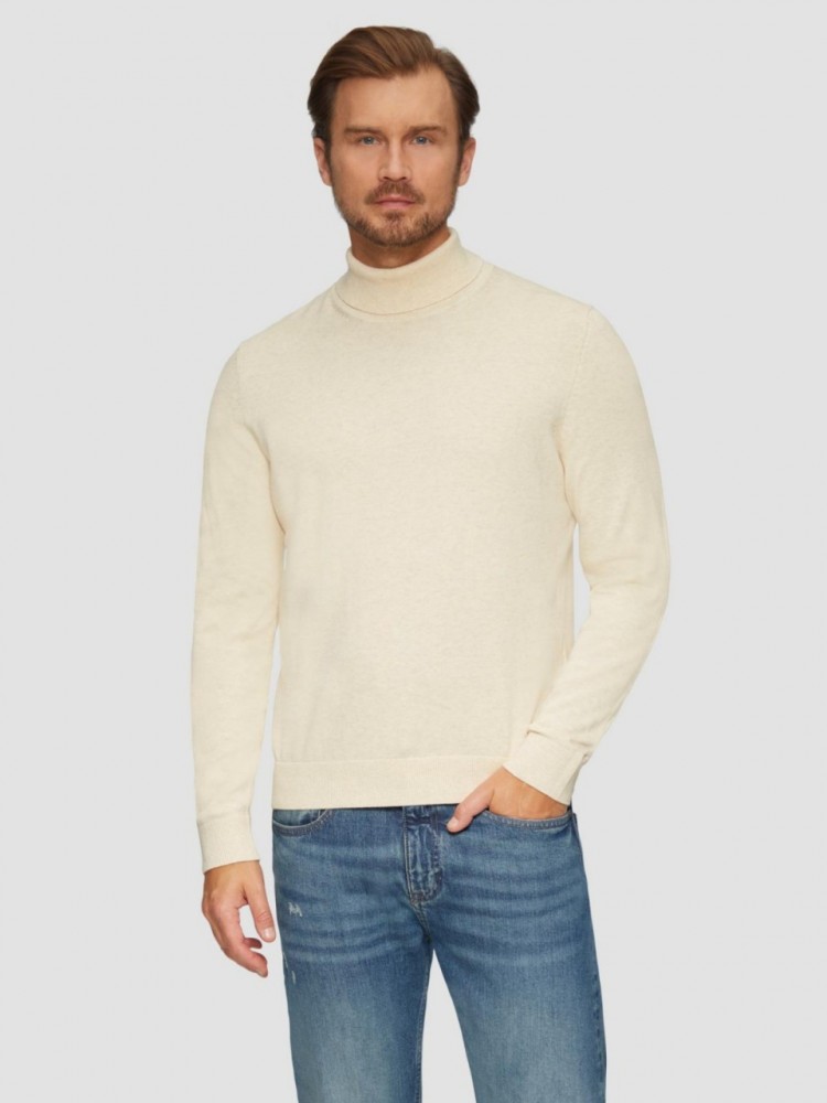 Pulover bărbați din bumbac cu guler înalt, Crem, L