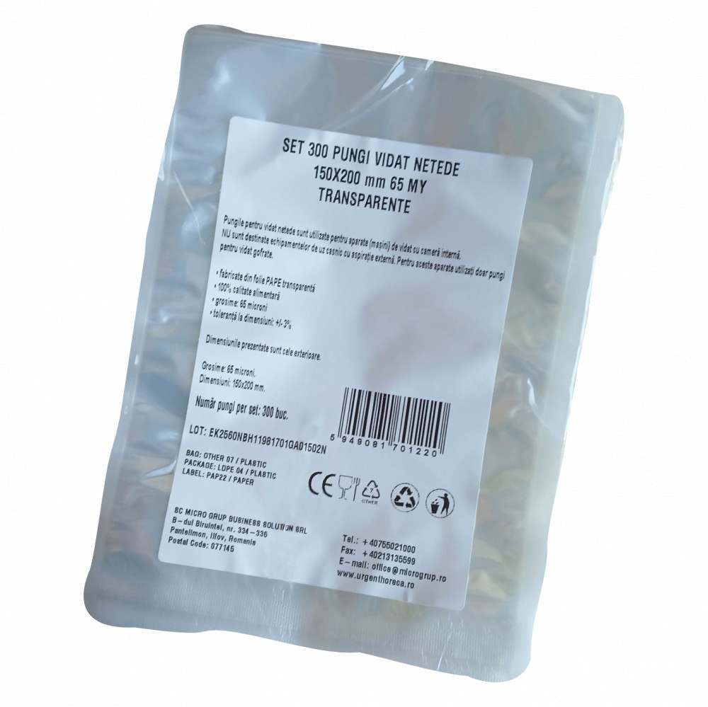 Pungi vidat netede pentru masini de vidat cu camera 150X200 mm 65 my set 300 buc