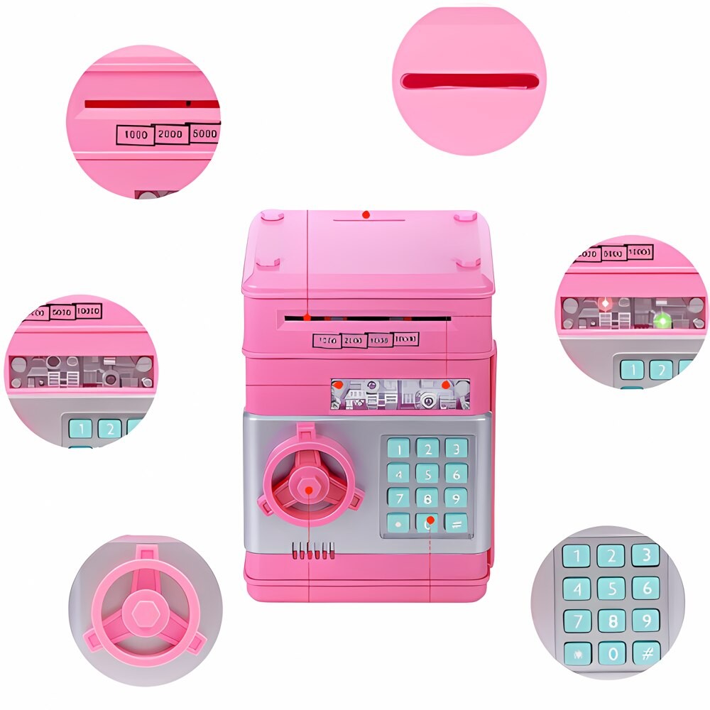 Aceasta pusculita interactiva tip bancomat este conceputa pentru a transforma economisirea intr-o activitate distractiva, inteligenta si educativa pentru cei mici. Cu un design modern si o culoare roz atractiva, produsul ii ajuta pe copii sa inteleaga principiile de baza ale gestionarii banilor prin joaca, intr-un mod simplu si intuitiv.