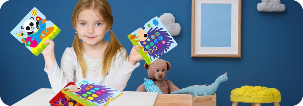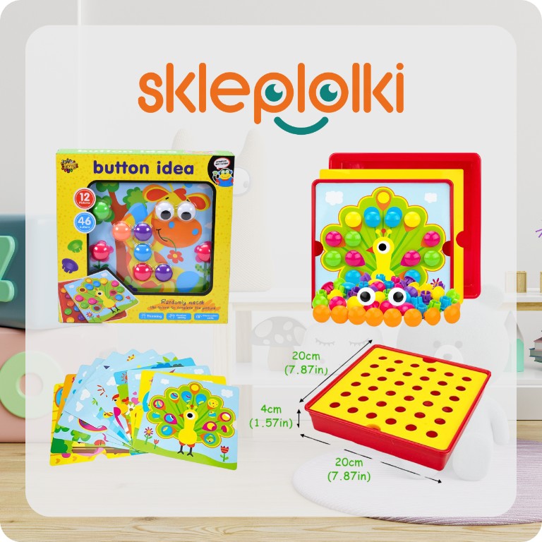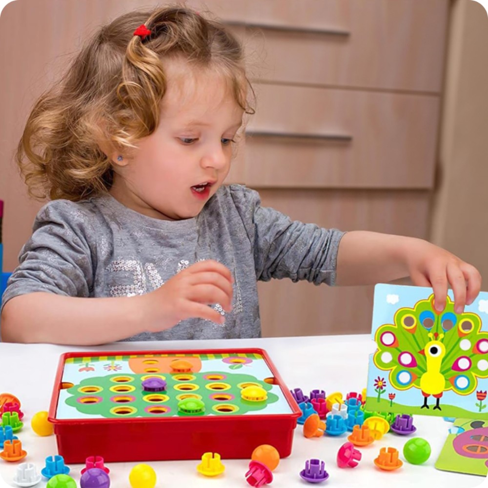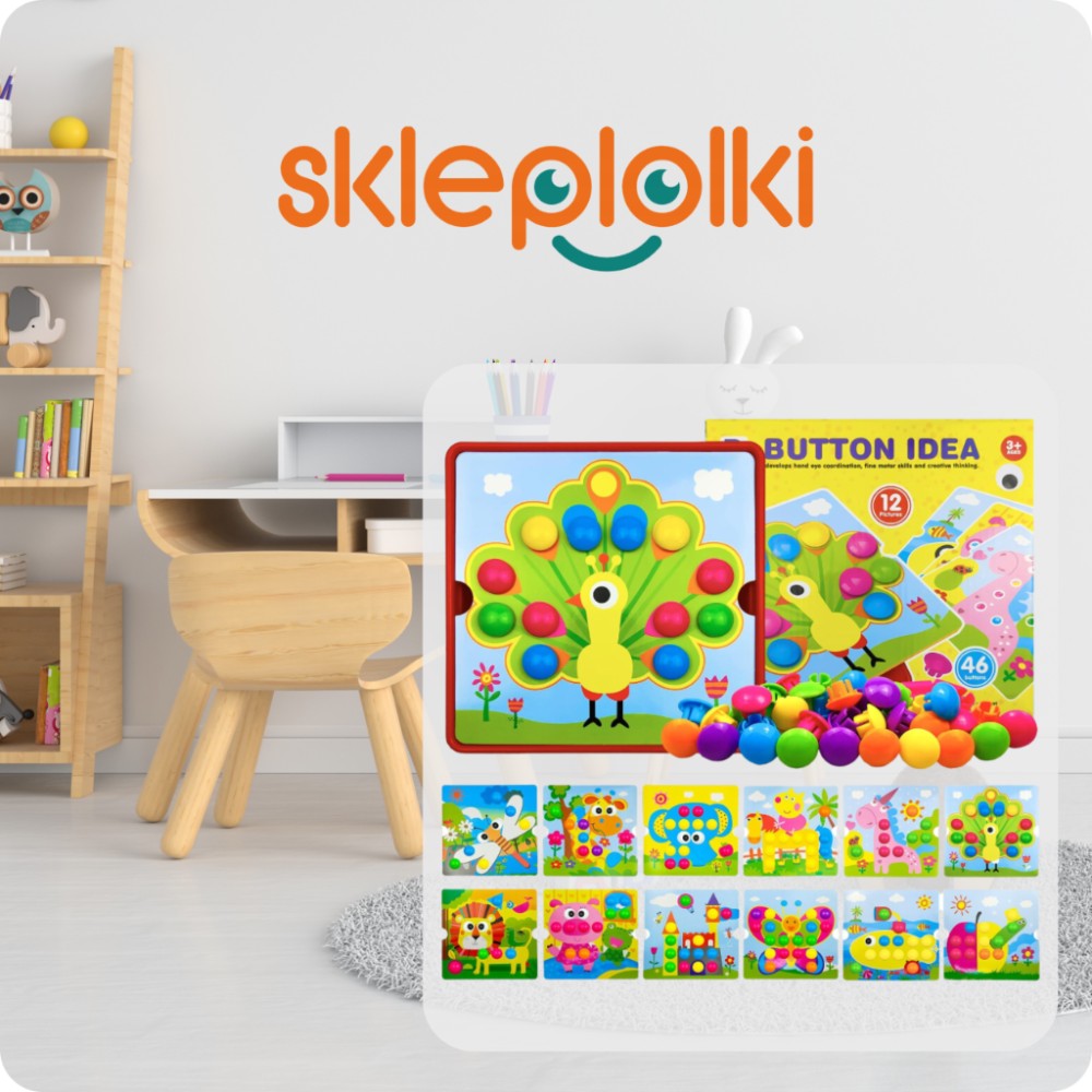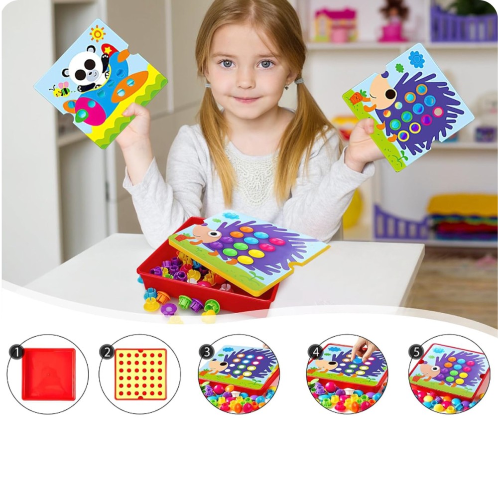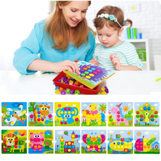 PUZZLE EDUCAȚIONAL CU MOSAIC DE BUTOANE PENTRU COPII, CU MULTE PIESE ȘI TABLOURI