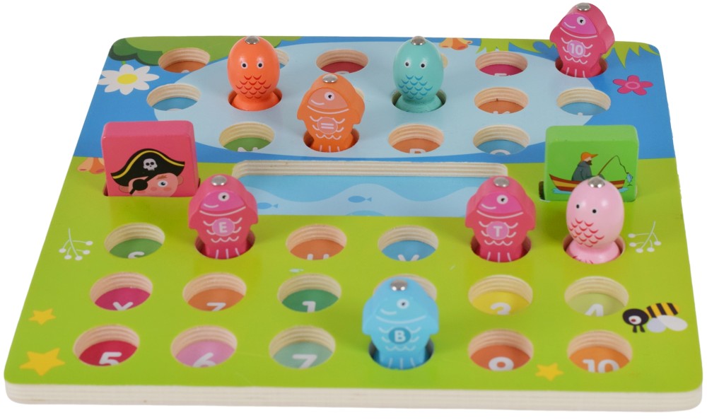 Copiii își dezvoltă coordonarea, concentrarea, cunoștințele despre litere și cifre și se distrează de minune prindând pești colorați.