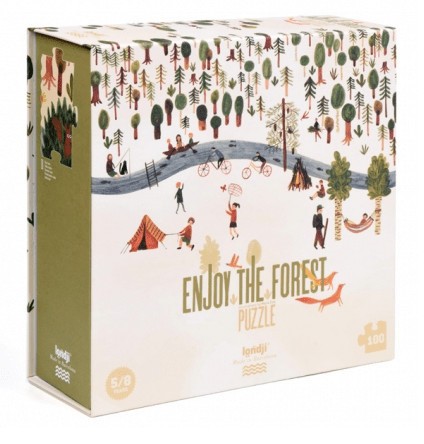 Puzzle Pădurea Puzzle cu 100 de piese. Dimensiune puzzle asamblat: 85 x 32 cm. Vârsta recomandată: +5 ani. Confecționat din Hârtie FSC și carton reciclat conform reglementarilor EN71&ASTM. AVERTISMENT: Contraindicat copiilor sub 3 ani, conține piese mici, pericol de sufocare. A se utiliza sub directa supraveghere a unui adult. Producător: Londji, Spania