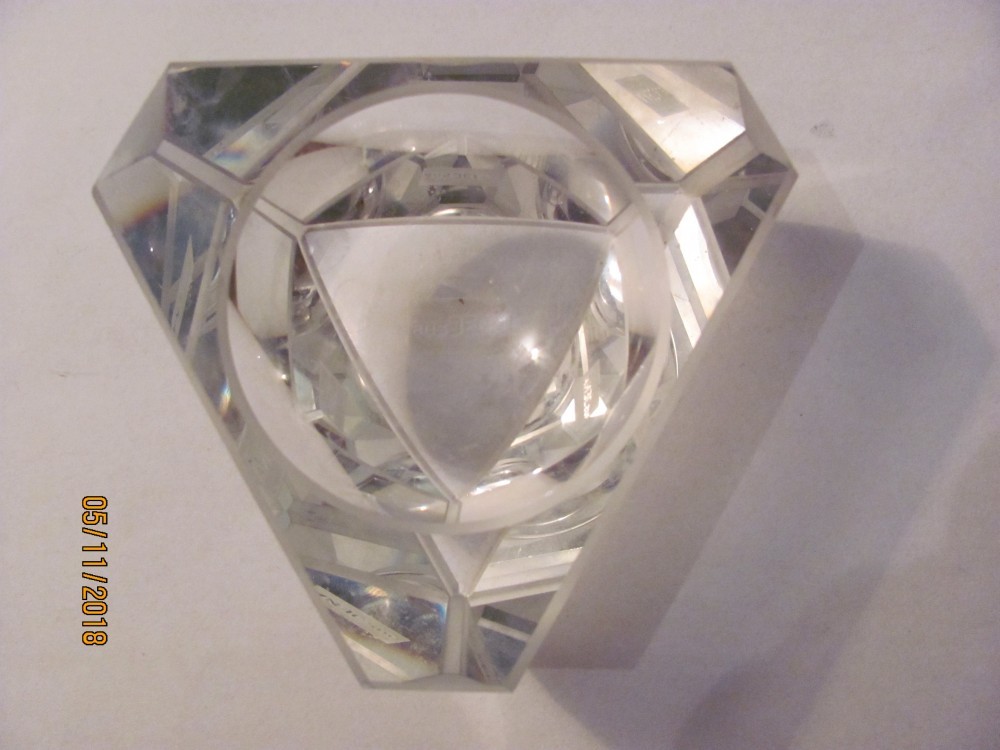 Bol vide poche marcat JENA - sticla; stare foarte buna (un colt, cel din stanga jos, foarte putin ciupit), estetica frumoasa; latura "triunghiului": 8 cm; inaltime: 3,80 cm; greutate: 300 g.