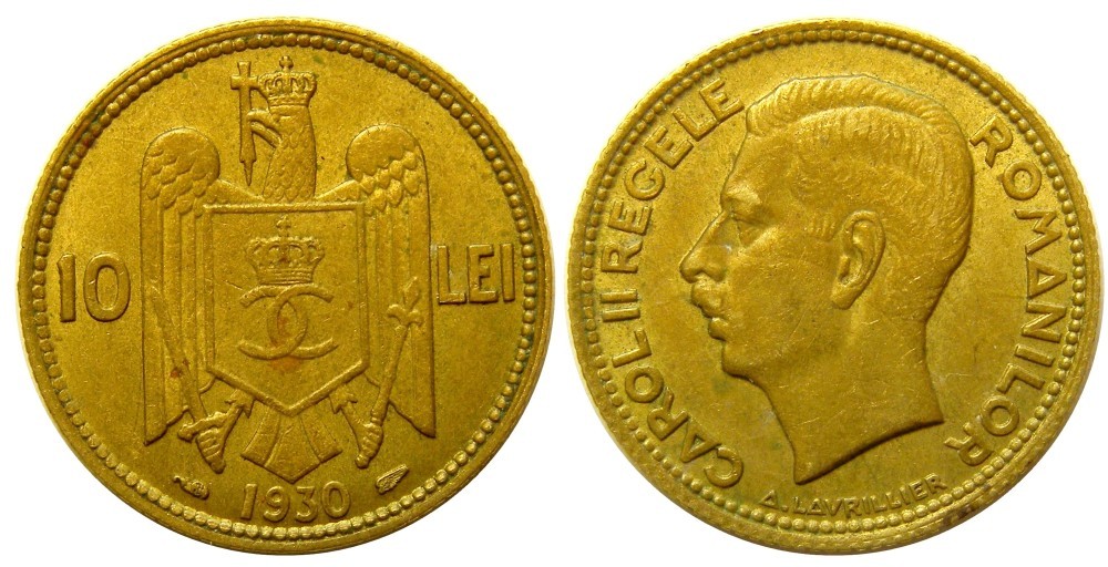 q589 MONEDA 10 LEI 1930 CAROL II monetaria PARIS APROAPE NECIRCULATA aUNC piesa de colectie