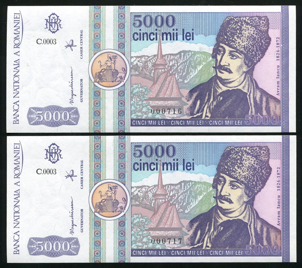 q602 PERECHE CONSECUTIVA 5000 LEI 1992 NECIRCULATA UNC