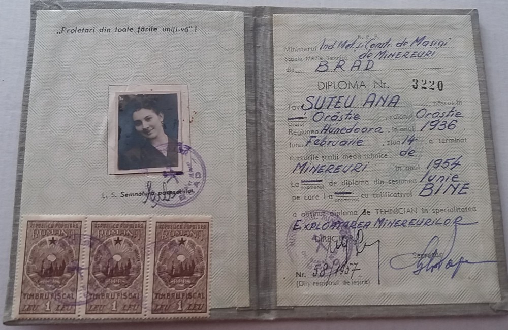 QW13 1 7 - 1954 - Diploma absolvire - Scoala medie tehnica de minereuri