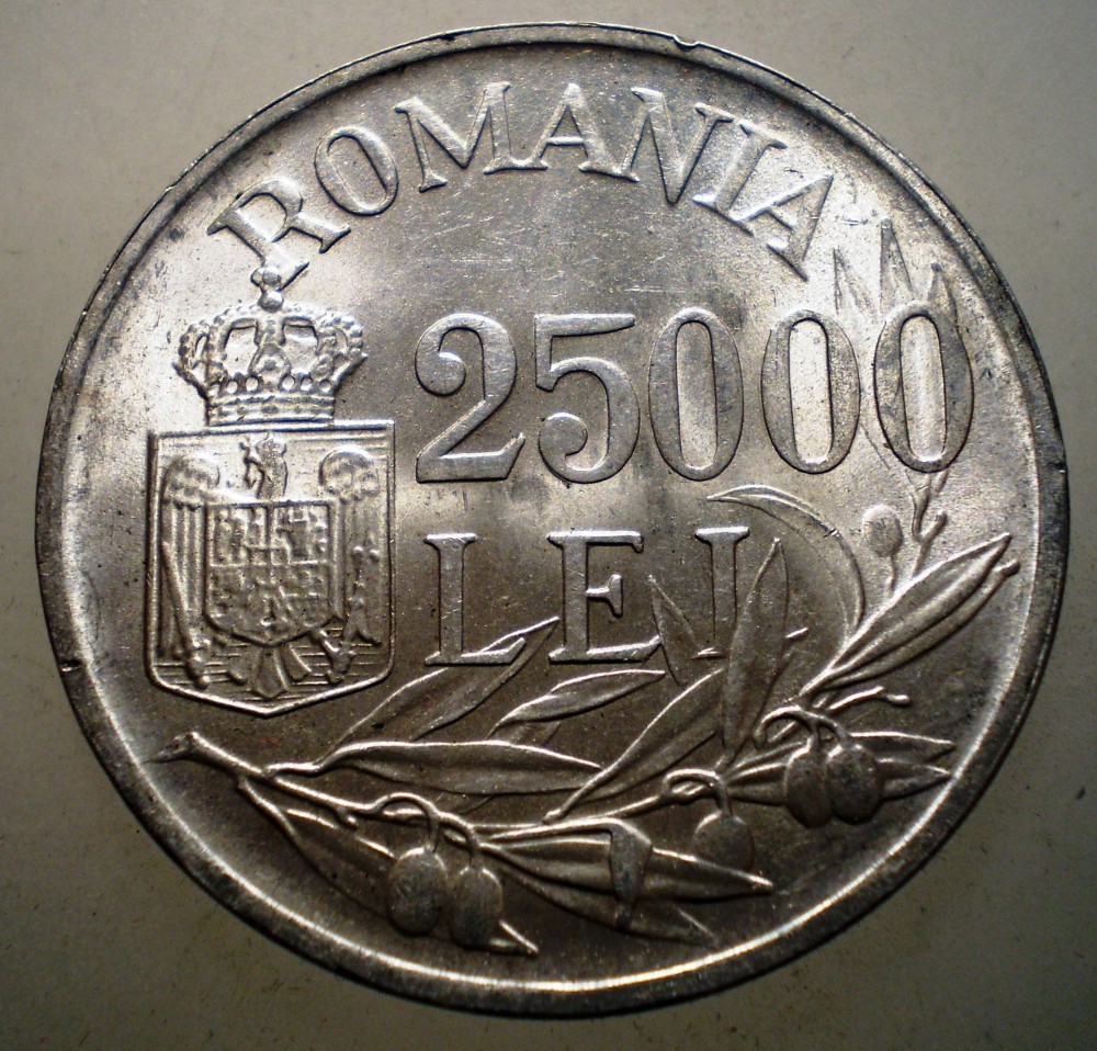 R.127 ROMANIA MIHAI I 25000 LEI 1946 XF/AUNC EROARE RARA 3