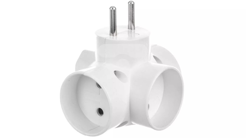 Conector AC supply spliter Layout 2P Type round flat white TIMEX-ELEKTRO R-43. Producător TIMEX-ELEKTRO. Tip conector alimentare AC. Conector spliter. Tip dispunere pini 2P. Culoare albă. Ieşire 4x soclu. Versiune conector: plat euro x1. rotund x2.