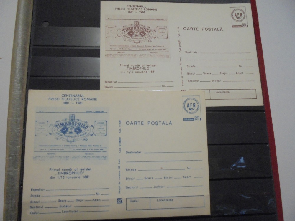 R.S.R. - 2 BUC.DIFERITE COLOR CU CENTENARUL PRESEI FILATELICE ROMANE 1881-1981, AVAND POZA PRIMULUI NUMAR AL REVISTEI "TIMBROPHILO" , EDITATE DE AFR