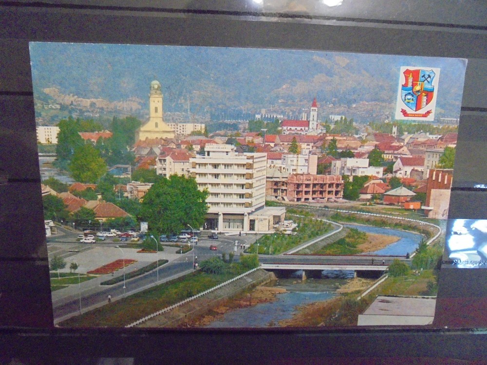 R.S.R. - BAIA MAARE - VEDERE DIN ORAS, DREAPTA SUS STEMA ORASULUI - CIRCULATA, TIMBRAATA - COLOR.
