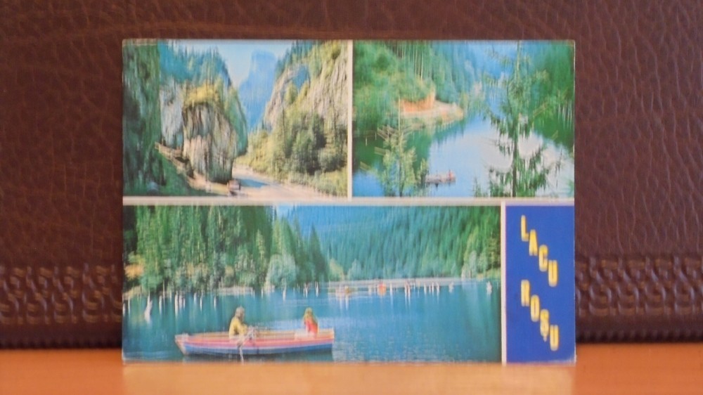 R.S.R. - LACU ROSU - 3 VEDERI A LACULUI CU IMPREJURIMI - CIRCULATA , TIMBRATA.