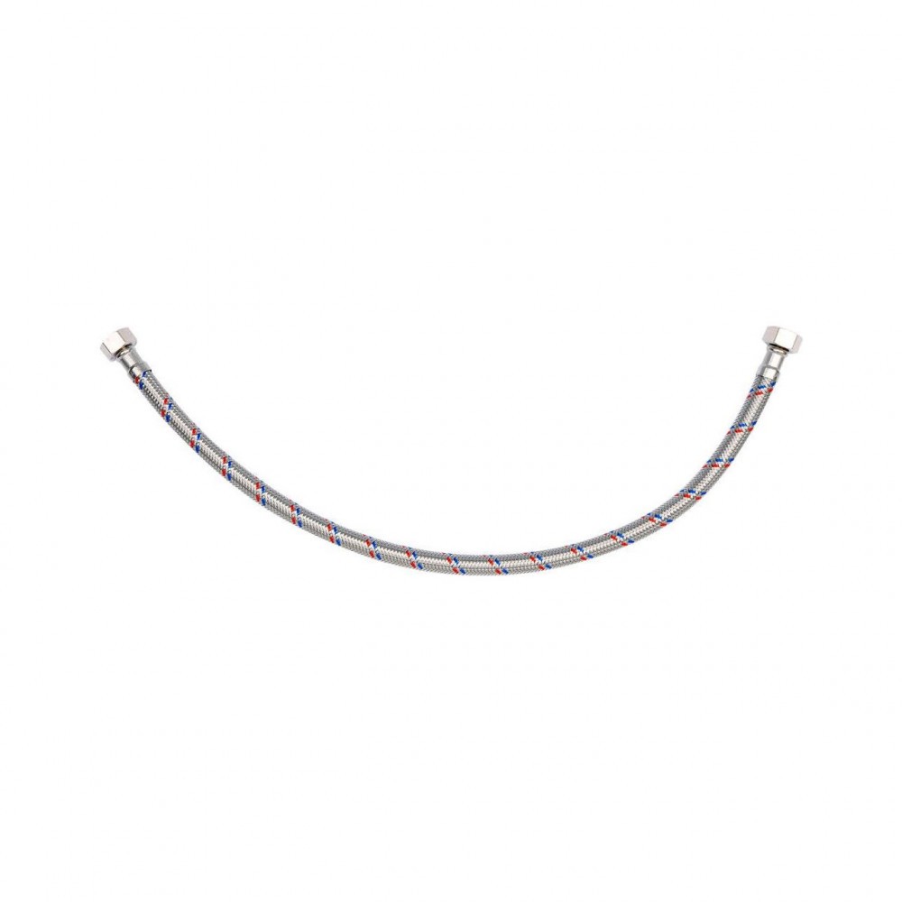 Furtun flexibil de conectare cu o împletitură de oțel inoxidabil. Este proiectat pentru apă caldă și rece. Are aprobarea PZH pentru contactul cu apa potabilă. Lungime 500mm. Presiune maxima 1MPa. Temperatura maximă 90 ° C. Debit mediu 32L / min. Diametru interior 8mm și diametru exterior 12mm. Filet de conectare: 3/8 "mamă x 3/8" mamă. Furtun din cauciuc din cauciuc EPDM, conexiuni din alamă nichelată, garnitură din cauciuc EPDM. Este proiectat pentru a conecta cisterne sau supape de spălare a toaletei.