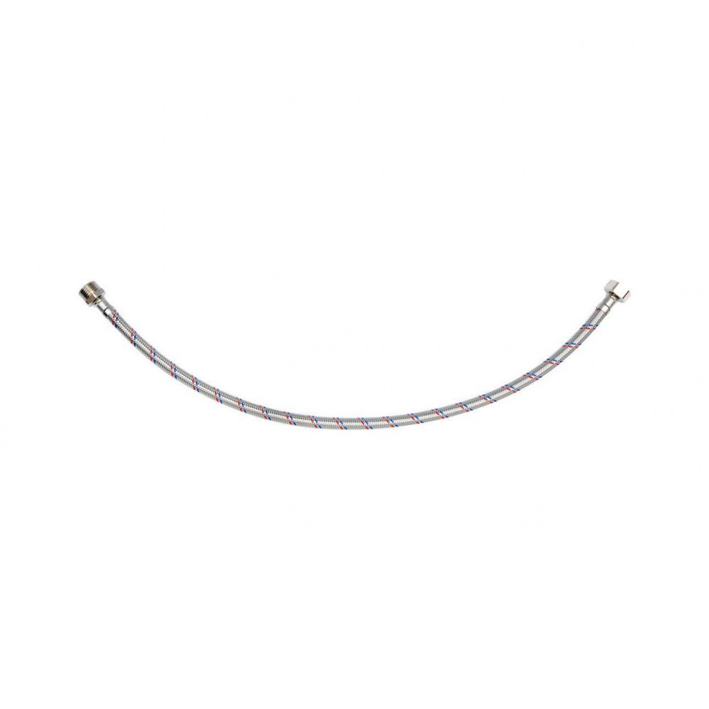Furtun flexibil de conectare cu o împletitură de oțel inoxidabil. Este proiectat pentru apă caldă și rece. Are aprobarea PZH pentru contactul cu apa potabilă. Lungime 600mm. Presiune maxima 1MPa. Temperatura maximă 90 ° C. Debit mediu 32L / min. Diametru interior 8mm și diametru exterior 12mm. Filet de conectare: mamă 1/2 "x tată 1/2". Furtun din cauciuc din cauciuc EPDM, conexiuni din alamă nichelată, garnitură din cauciuc EPDM. Este proiectat pentru a conecta cisterne sau supape de spălare a toaletei.