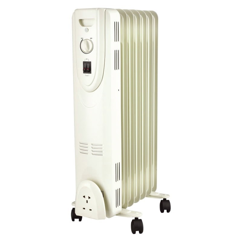 Radiator cu ulei, 7 elementi, putere 1500 W, alb, termostat reglabil