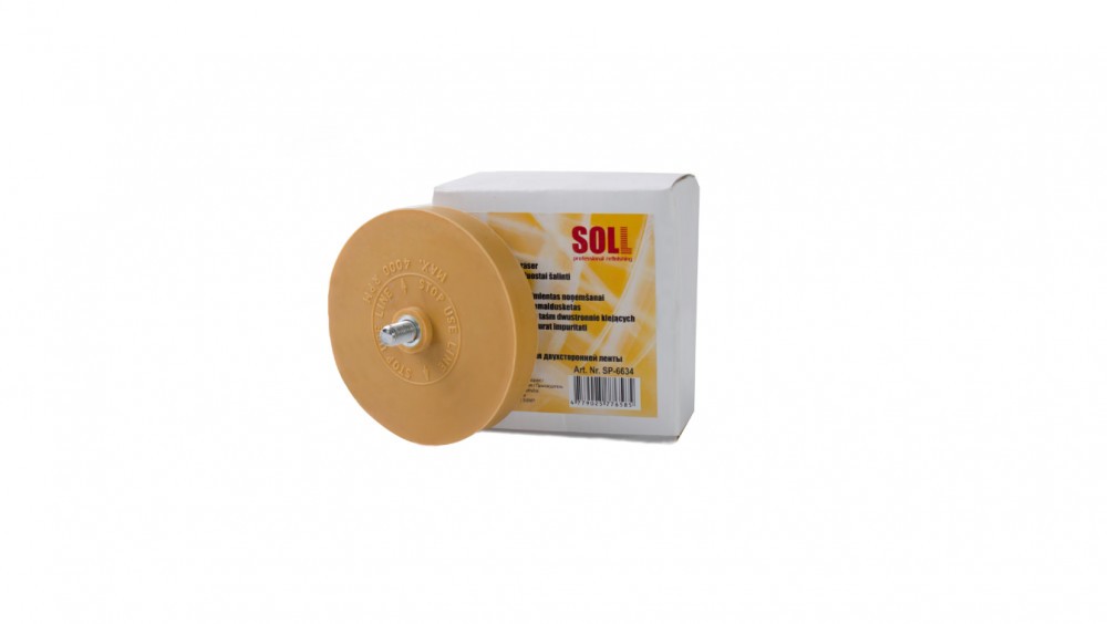 Radiera curatare bandouri Soll este un produs din gama profesionala de materiale folosite in reparatii tinichigerie/ vopsitorie in vederea curatarii de impuritati a bandourilor, barilor, elementelor din plastic, dar si in inlaturarea urmelor de lipici, adeziv in urma detasarii ornamentelor auto.