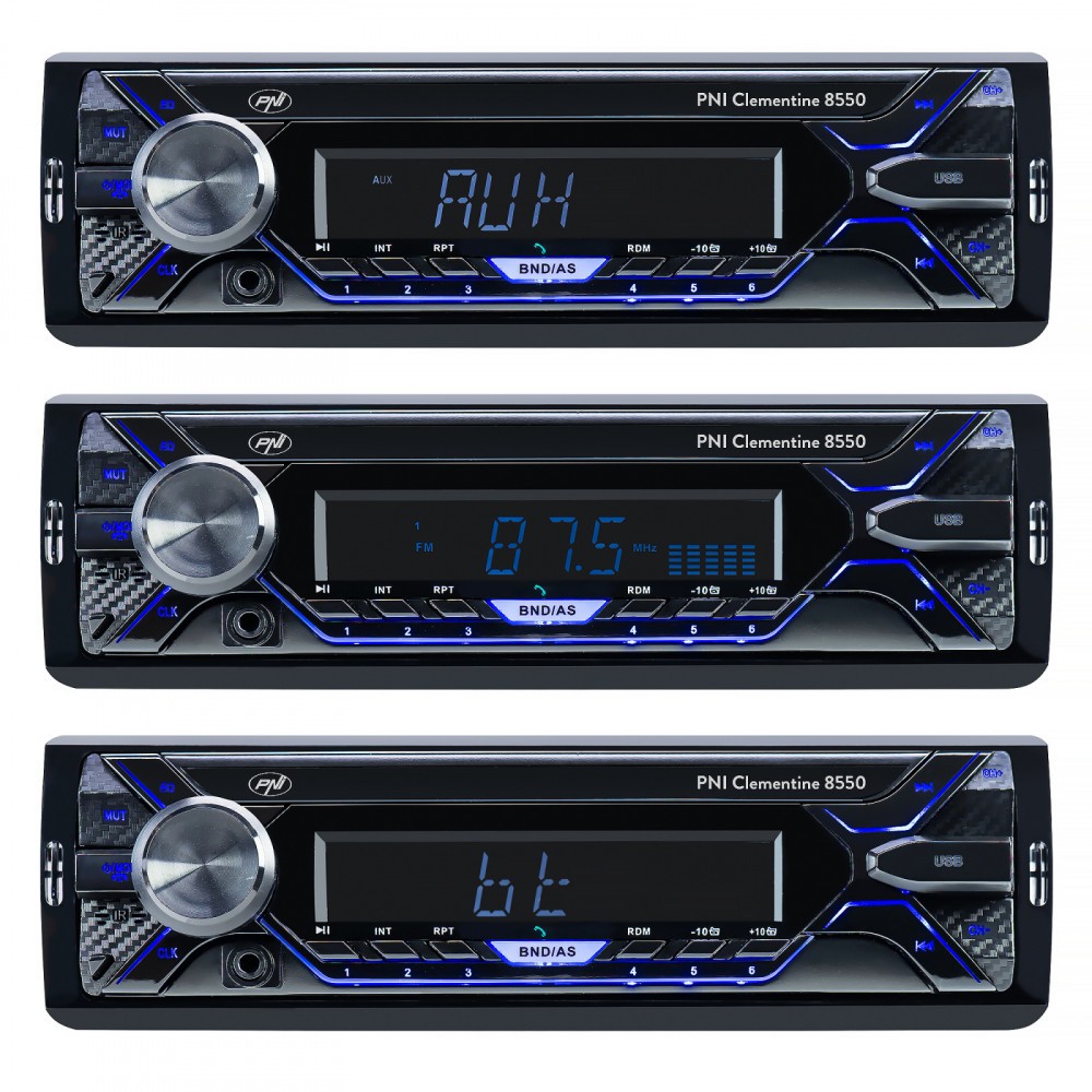 Radio MP3 player auto PNI Clementine 8550BT, fata detasabila, 4x45w, 12V, 1 DIN, cu SD, USB, AUX, RCA