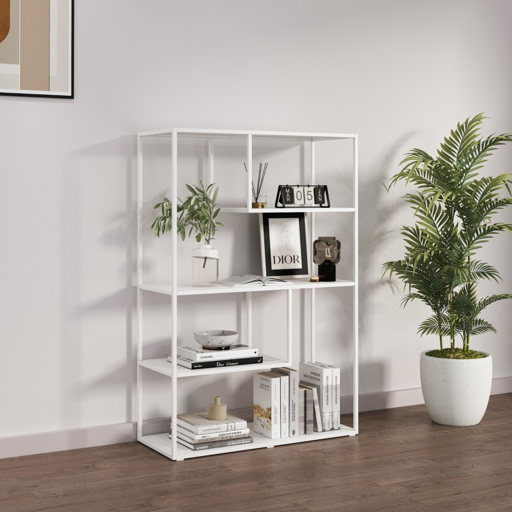 Raftul pentru carti este prevazut cu patru compartimente deschise, ideale pentru depozitarea cartilor, obiectelor decorative, plantelor de camera si a altor comori personale.. Datorita designului deschis obiectele preferate vor fi mereu usor accesibile si totodata vor fi intr-un loc vizibil.