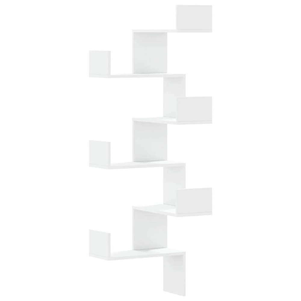 Raft coltar perete alb 45x45x147 cm lemn prelucrat
