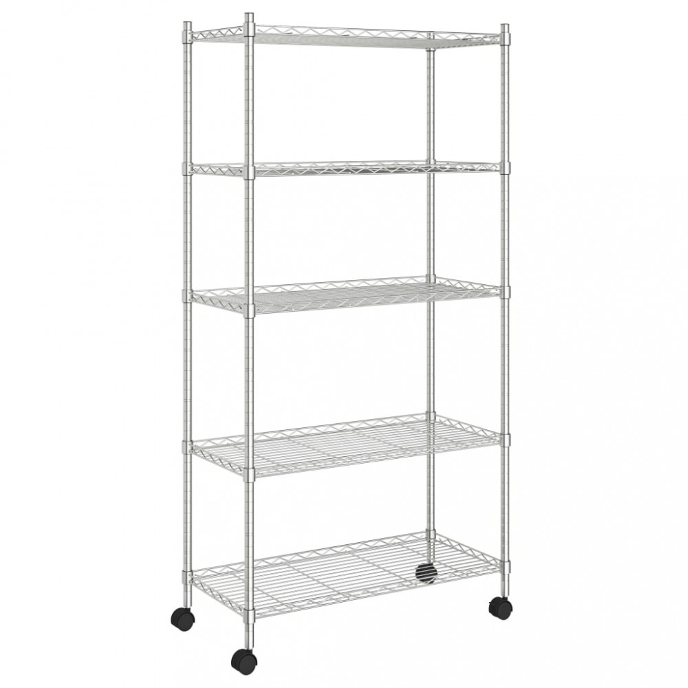Raft depozitare cu roti, 5 niveluri, 75x35x155 cm, crom, 250 kg