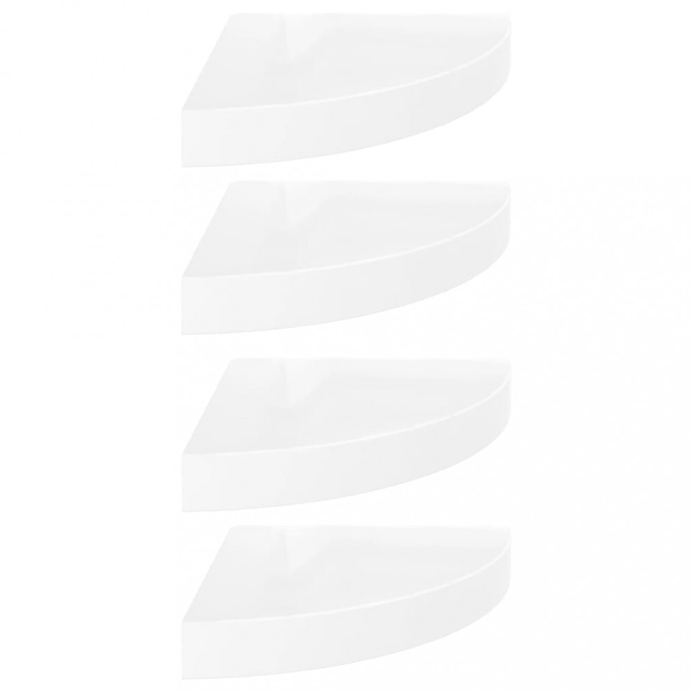 Rafturi de colt plutitoare, 4 buc., alb lucios, 25x25x3,8 cm, MDF