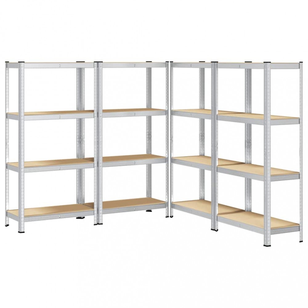 Rafturi de depozitare cu 4 niveluri, 4 buc., argintiu otel&lemn
