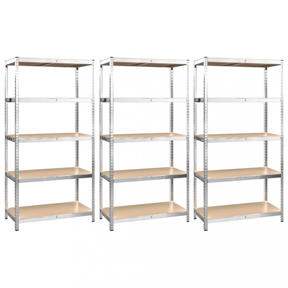 Rafturi de depozitare cu 5 niveluri, 3 buc., otel argintiu&lemn
