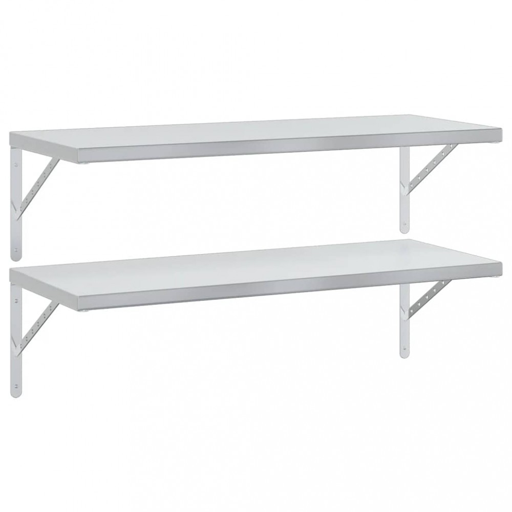 Rafturi de perete 2 buc., 100x40 cm, argintiu otel inoxidabil