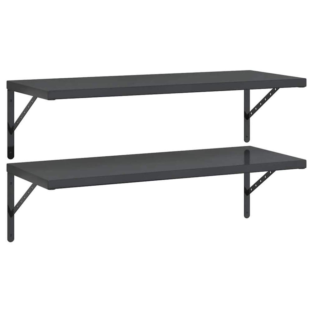 Rafturi de perete 2 buc., 100x40 cm, negru otel inoxidabil