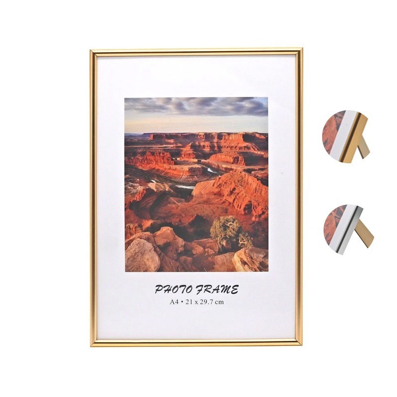 Rama foto A4, suport de birou, design elegant, aluminiu auriu si argintiu