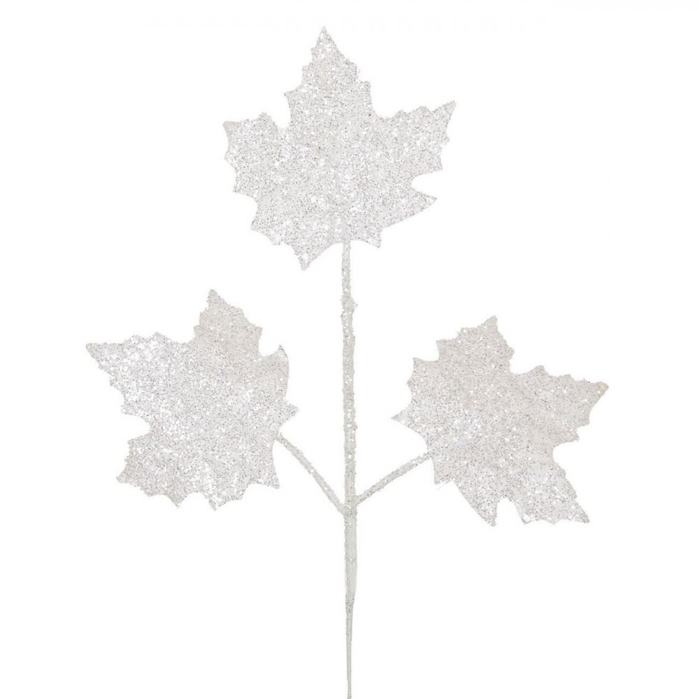 Ramură Decorativă Crăciun, Frunze Albe cu Glitter, 51 cm