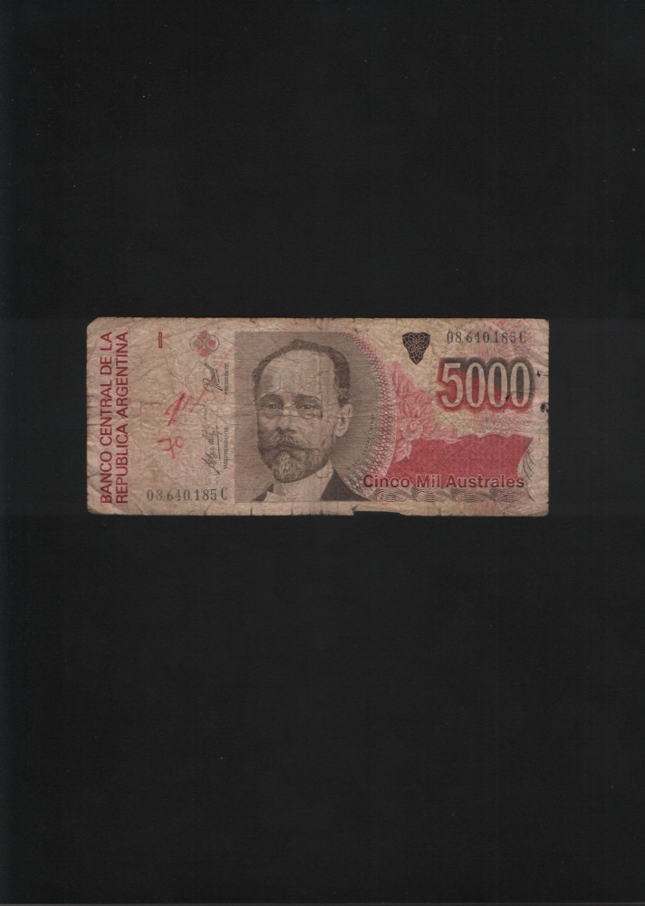 Rar! Argentina 5000 5.000 australes 1989 seria08640185 uzata