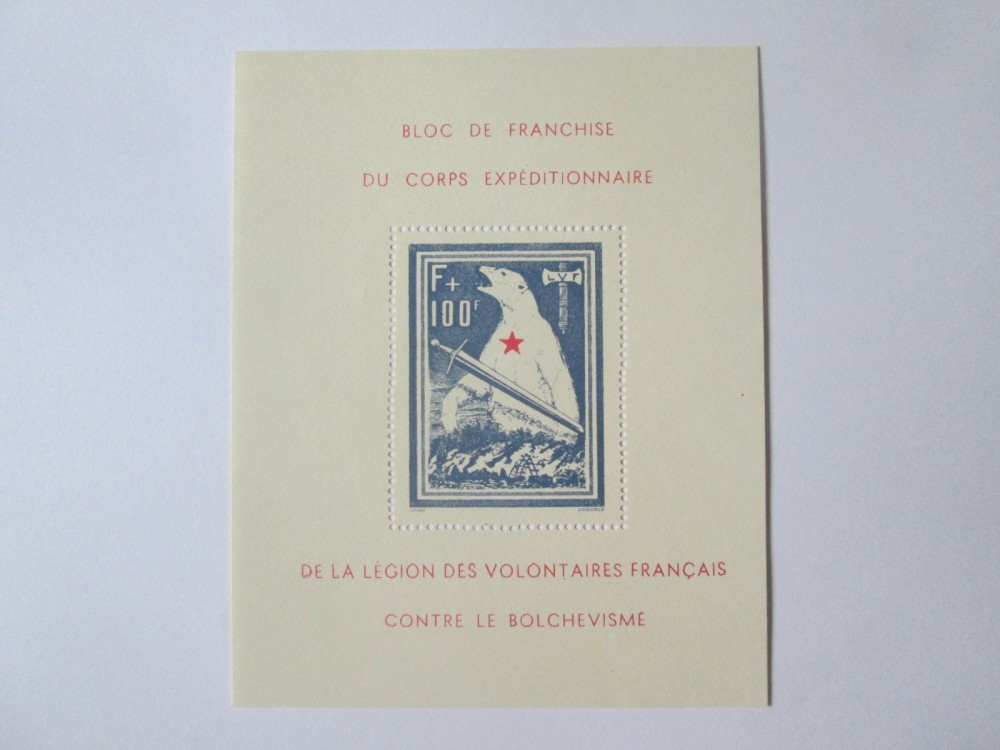 Rar! Bloc francez MNH negumat:Corpul expeditionar impotriva bolsevismului 1942