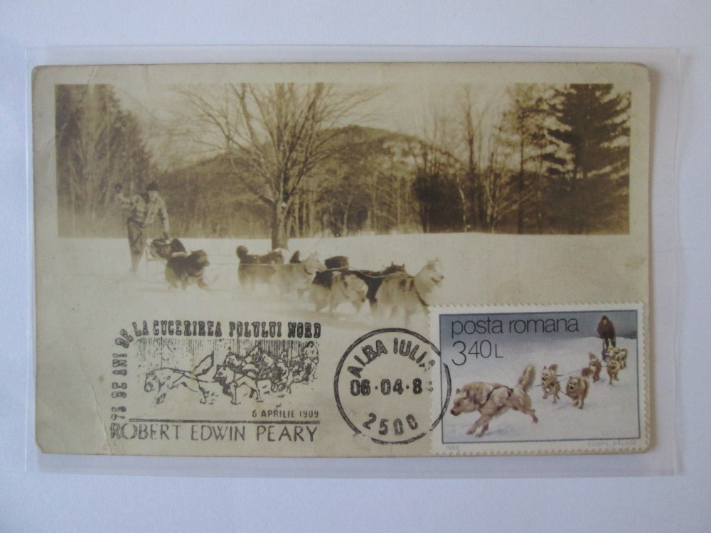 Rară! Carte poștală USA cir.1950,maxima Romania 1984:R.E.Peary 75 ani Polul Nord