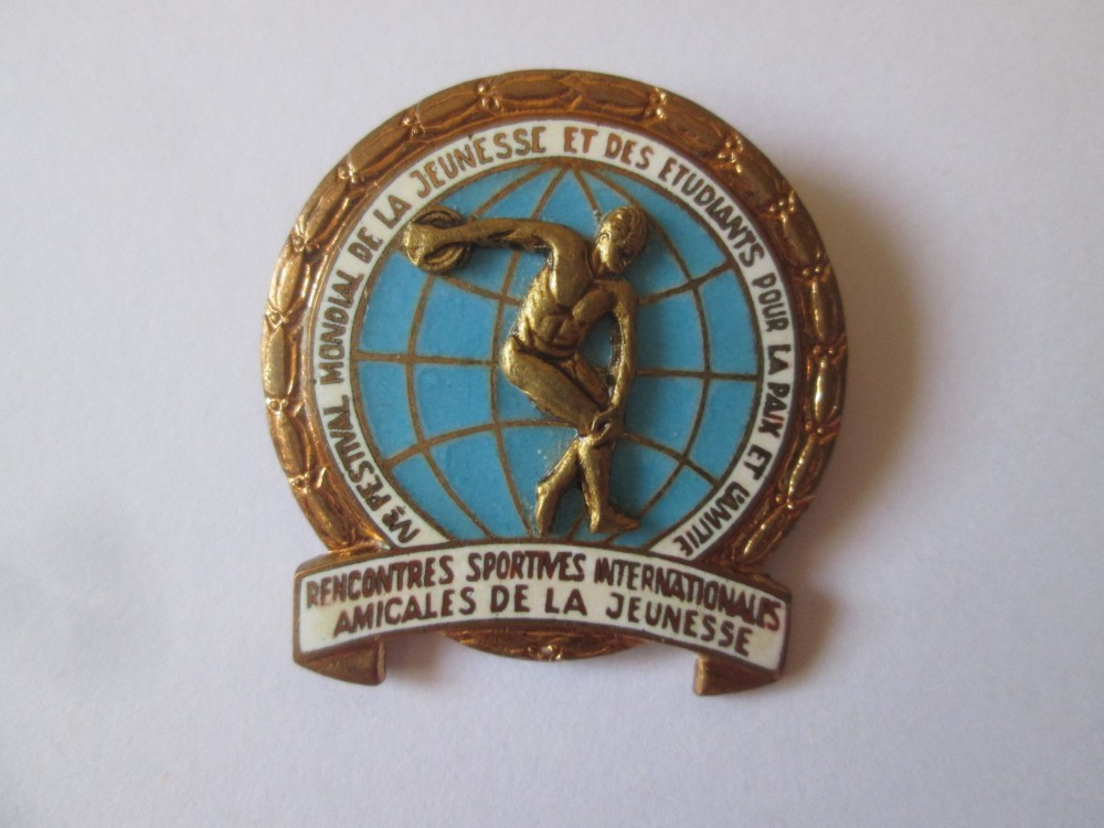 Rara! Insigna al 4-lea Festival Mondial al Tineretului si Studentilor București 1953,diametrul=34 mm