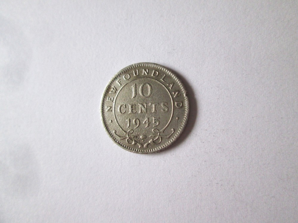 Rara! Newfoundland(Canada) 10 Cents 1945 moneda
