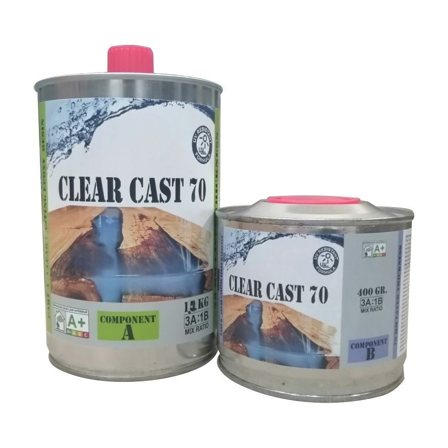 Rasina epoxidica transparenta Super Cast 70 este special conceputa pentru turnarea obiectelor decorative cum ar fi blaturi de masa, scrumiere, tocatoare, geode, etc..fiind ideala pentru artisti la inceput de drum, dar si pentru aplicatori profesionisti. Formula chimica speciala a acestei rasini epoxidice, va ajuta sa eliminati cele mai frecvente probleme care apar atunci cand se toarna obiecte de mari dimensiuni, cum ar fi bule de aer, strat neuniform, reactie exoderma violenta, crapaturi sau opacizari. O alta caracteristica extrem de importanta o reprezinta duritatea extrema pe care aceasta rasina transparenta o atinge dupa 7 zile de la turnare, fiind cea mai dura rasina, chiar si fara lacuire. Acum puteti turna blaturi de masa cu grosimi de pana la 7 cm, intr-un singur strat, fara emotii, debulare sau slefuire. Clear Cast 70, este rasina ideala pentru obiecte decorative.