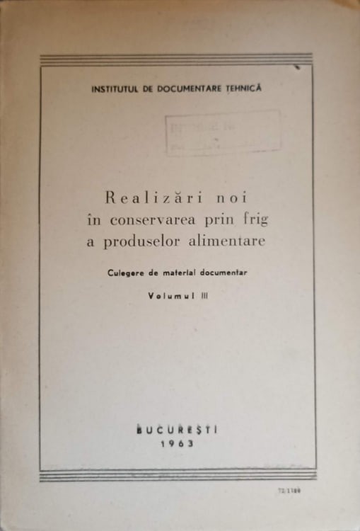 REALIZARI NOI IN CONSERVAREA PRIN FRIG A PRODUSELOR ALIMENTARE. CULEGERE DE MATERIAL DOCUMENTAR. VOL.3-INST-236219